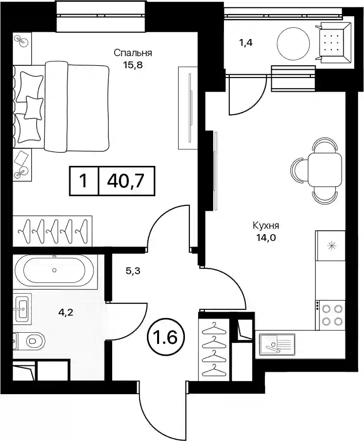 7 790 000 ₽1-к.квартира, 39.9 м², 6 эт.