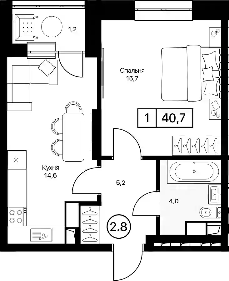 8 094 000 ₽1-к.квартира, 40.7 м², 2 эт.