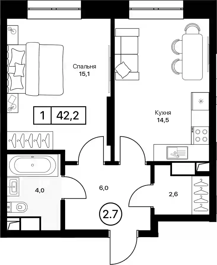 42.2 м2