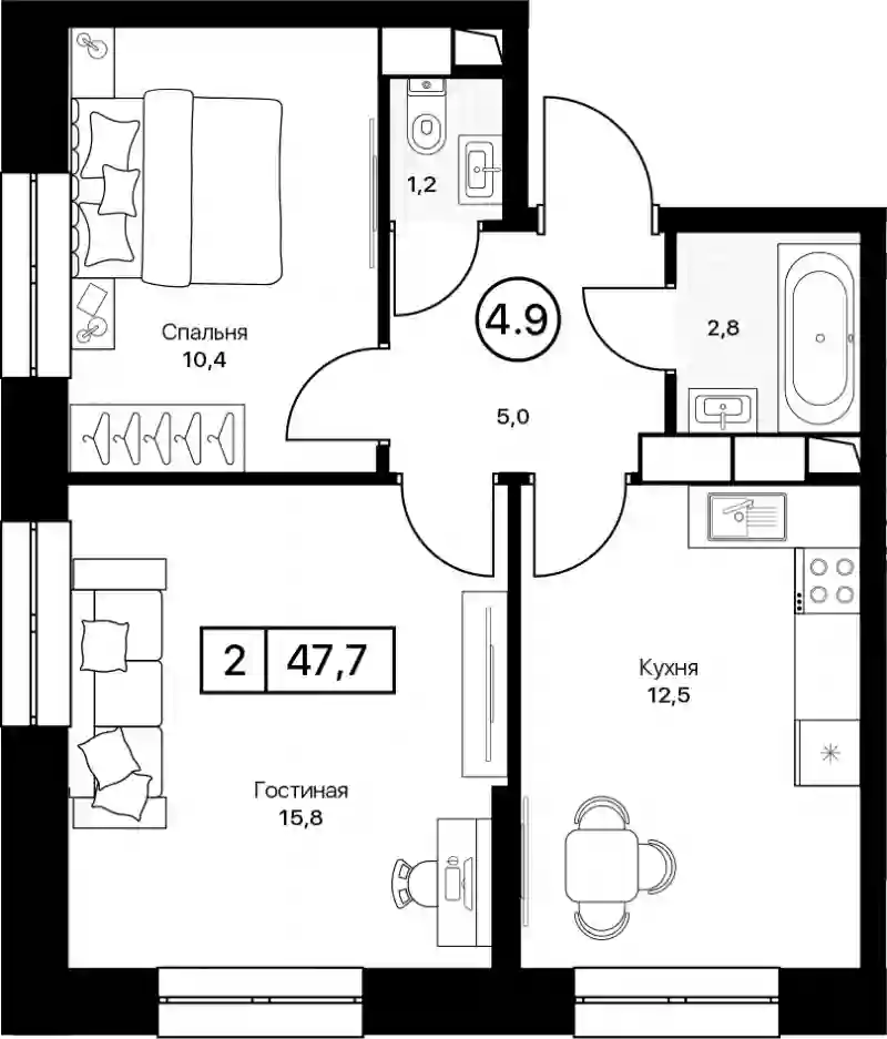 В комплексе представлены квартиры различных планировок от студий до 3-комнатных квартир. Планировки предусматривают наличие лоджий, угловое остекление, двухуровневые варианты, а также мастер-спальни с собственными ванными комнатами и гардеробными. Квартиры передаются с чистовой отделкой и высотой потолков до 4.75 метров.