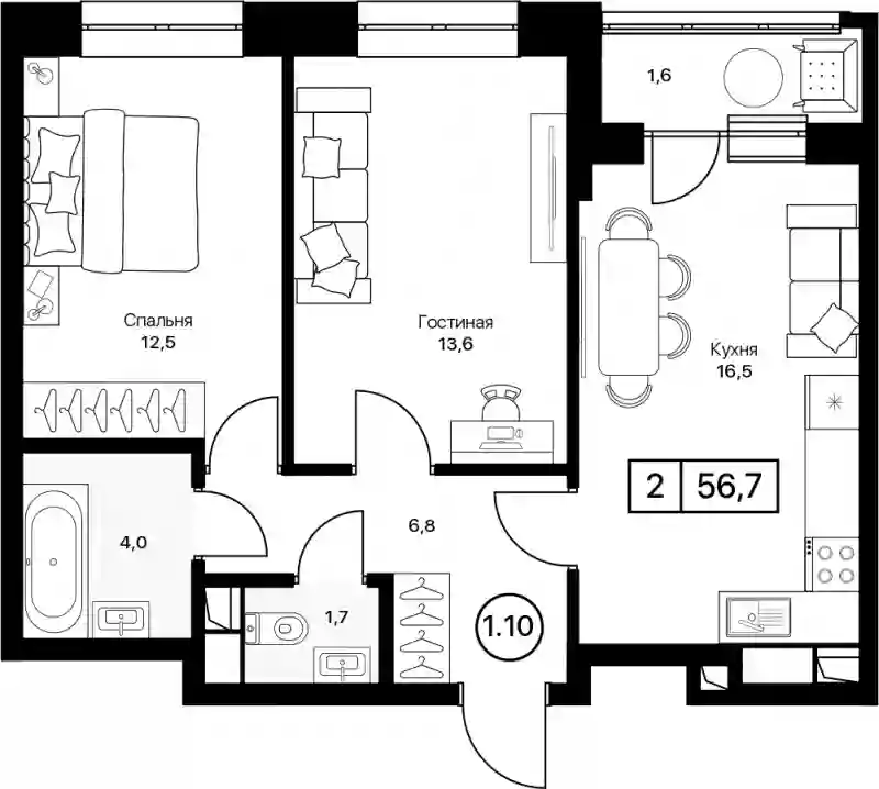 11 609 000 ₽2-к.квартира, 61.1 м², 5 эт.