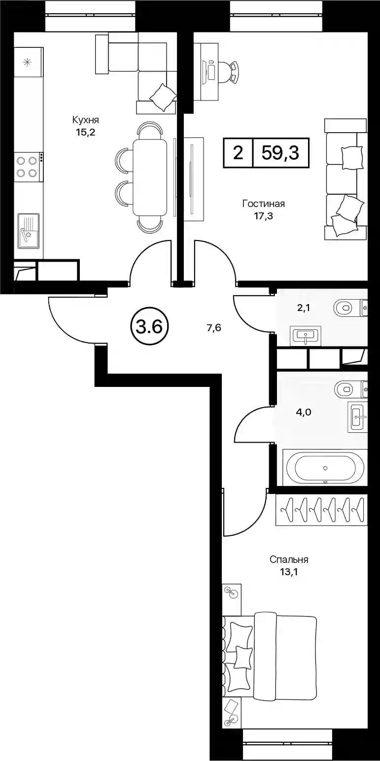 2-к.квартира, 59.3 м², 5 эт. в ЖК Пушкино Град Корпус 2