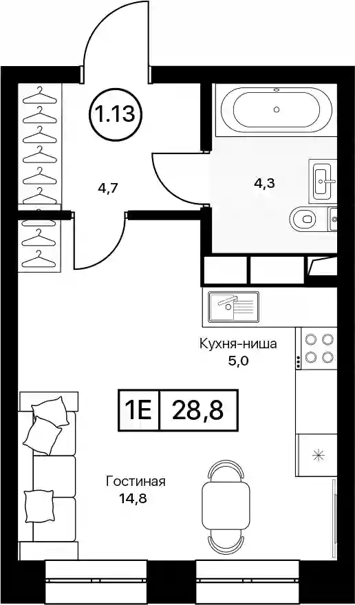 5 781 000 ₽Студия, 28.4 м², 7 эт.
