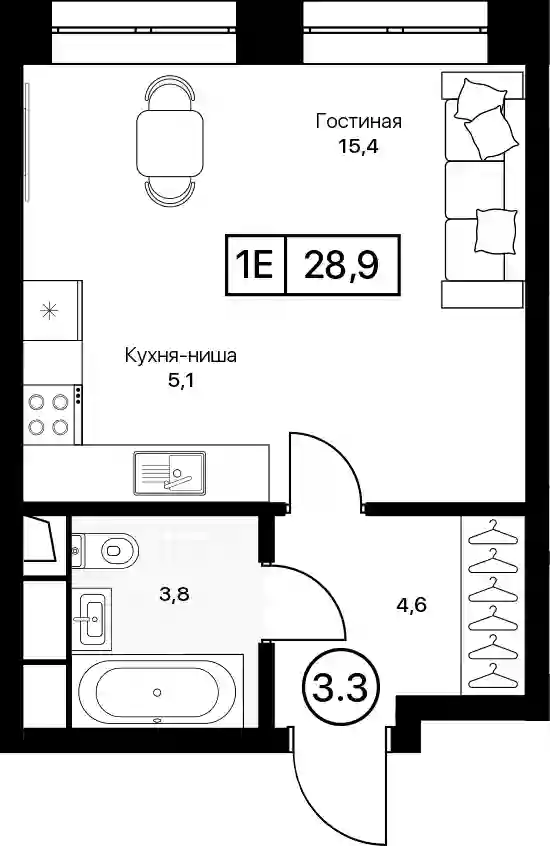 5 713 500 ₽Студия, 29.6 м², 3 эт.