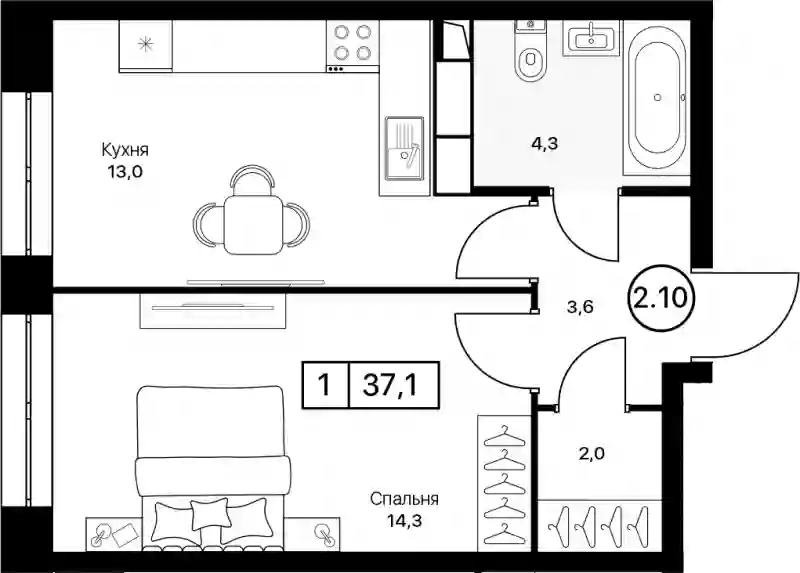 1-к.квартира, 37.1 м², 13 эт. в ЖК Пушкино Град Корпус 3