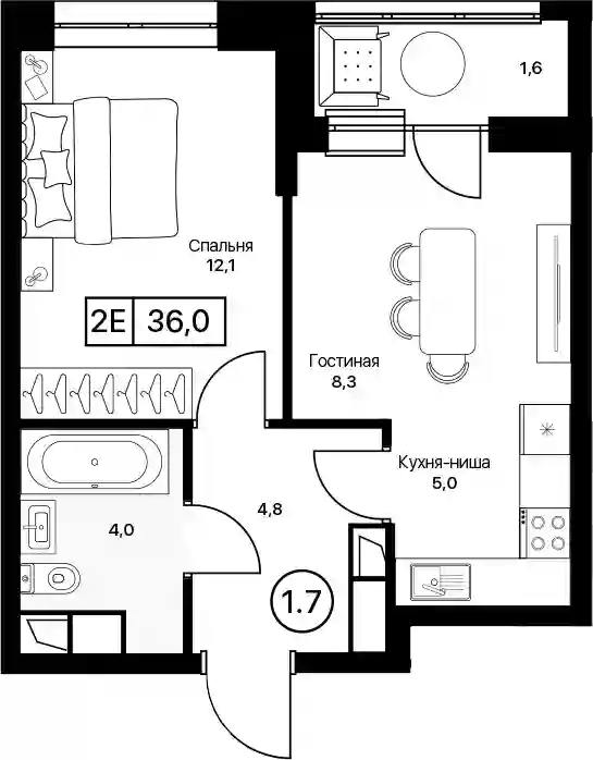 7 718 500 ₽2-к.квартира, 34.6 м², 13 эт.
