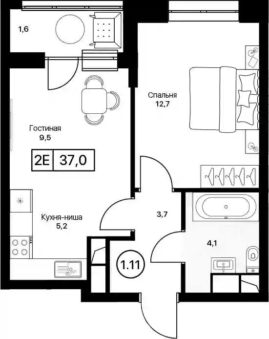7 182 000 ₽1-к.квартира, 37.9 м², 11 эт.