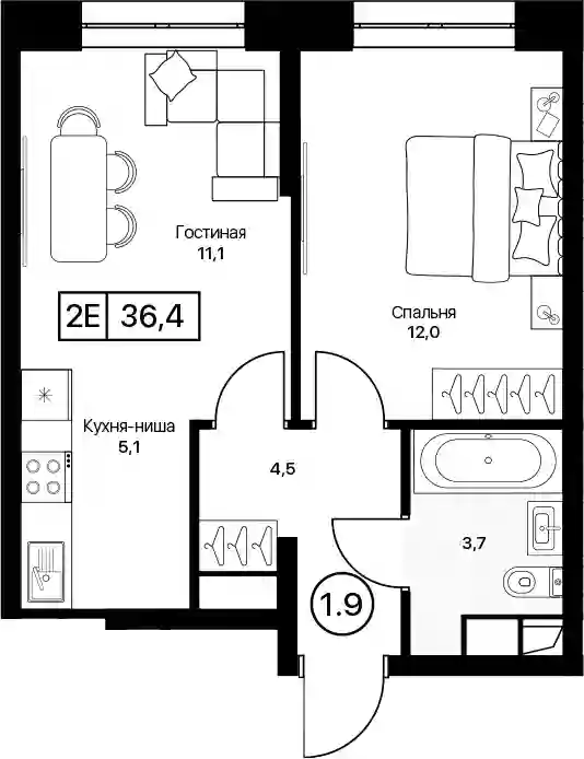 36.4 м2