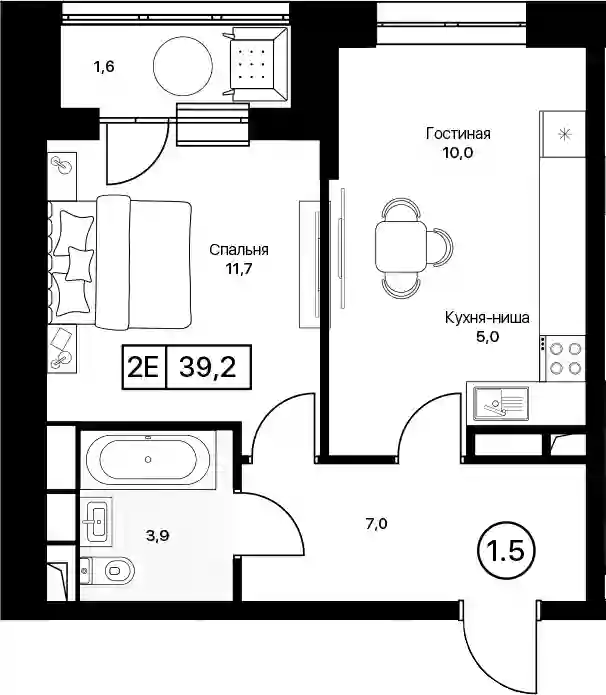 7 814 400 ₽1-к.квартира, 39.3 м², 5 эт.
