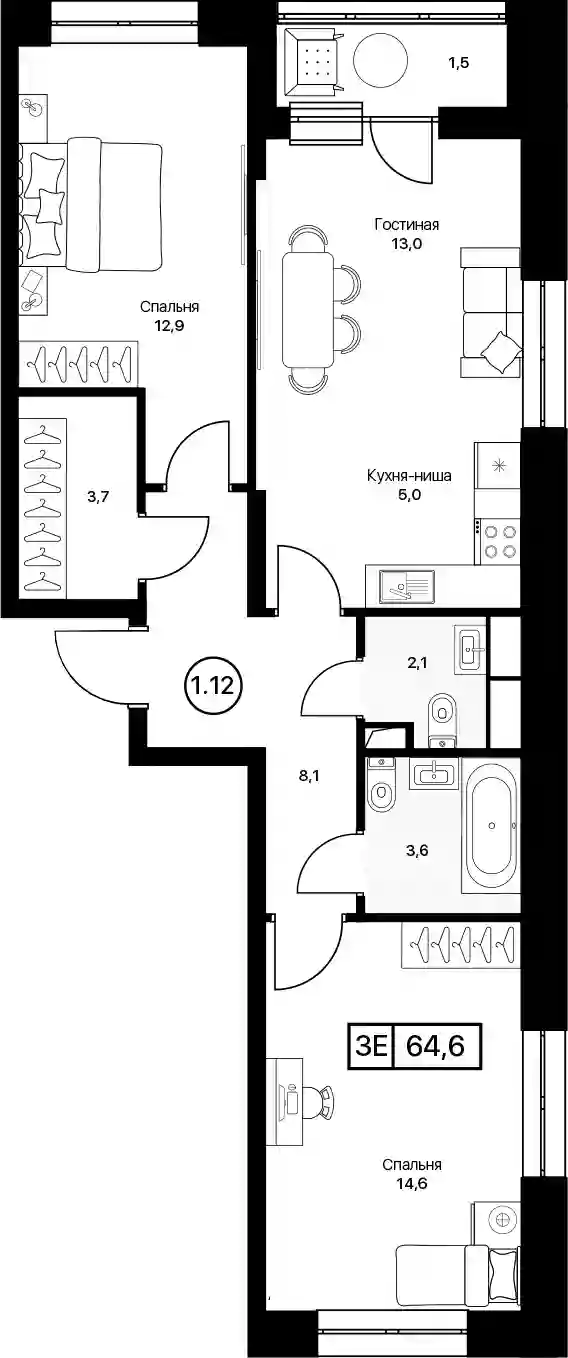 12 672 500 ₽3-к.квартира, 67 м², 5 эт.