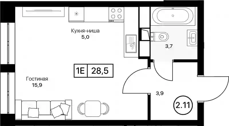 5 831 200 ₽Студия, 29.3 м², 11 эт.