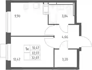 1-к.квартира, 32.07 м², 11 эт. в ЖК Пятницкие Луга Корпус 2.1