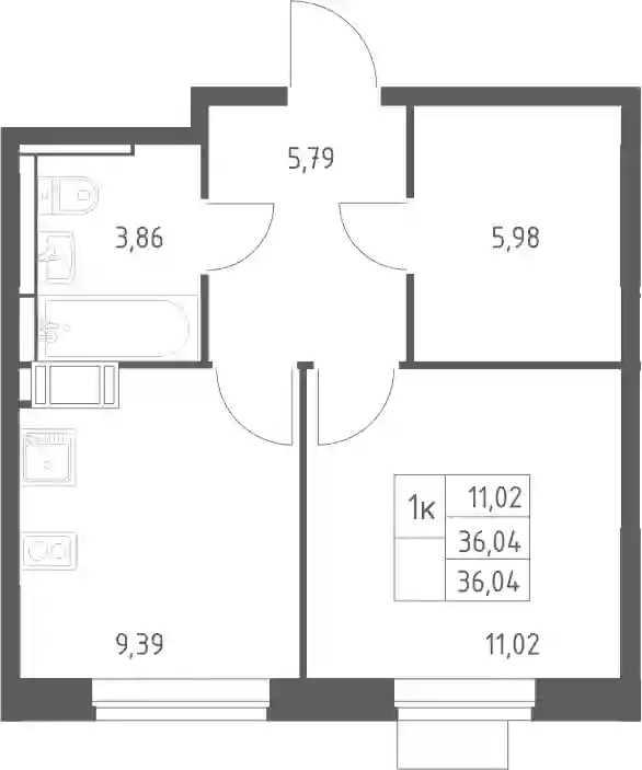 1-к.квартира, 36.04 м², 5 эт. в ЖК Пятницкие Луга Корпус 2.1