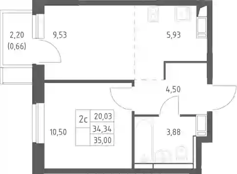 2-к.квартира, 34.34 м², 12 эт. в ЖК Пятницкие Луга Корпус 2.1