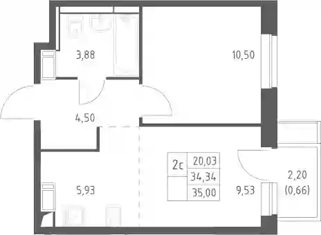 34.34 м2
