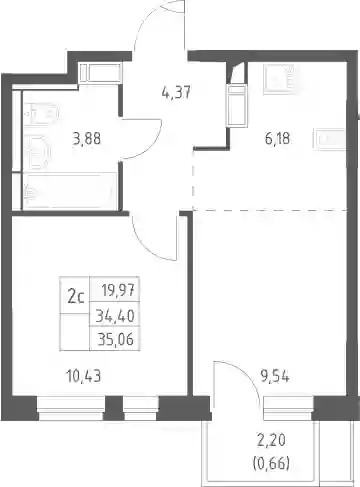 2-к.квартира, 34.4 м², 4 эт. в ЖК Пятницкие Луга Корпус 2.1