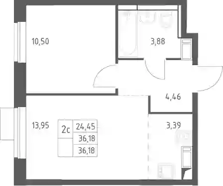 2-к.квартира, 36.18 м², 12 эт. в ЖК Пятницкие Луга Корпус 2.1