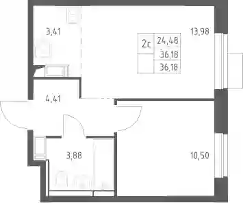 2-к.квартира, 36.18 м², 7 эт. в ЖК Пятницкие Луга Корпус 2.1