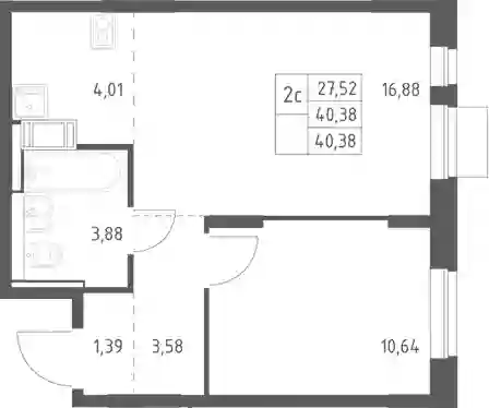 2-к.квартира, 40.38 м², 12 эт. в ЖК Пятницкие Луга Корпус 2.1