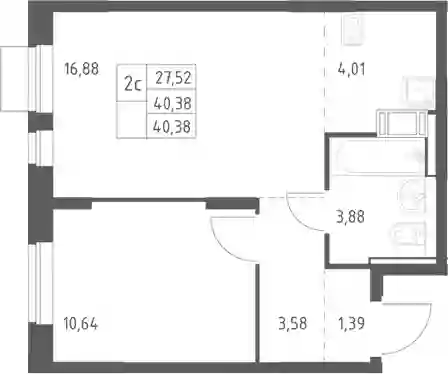2-к.квартира, 40.38 м², 12 эт. в ЖК Пятницкие Луга Корпус 2.1