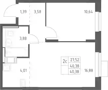 2-к.квартира, 40.38 м², 7 эт. в ЖК Пятницкие Луга Корпус 2.1