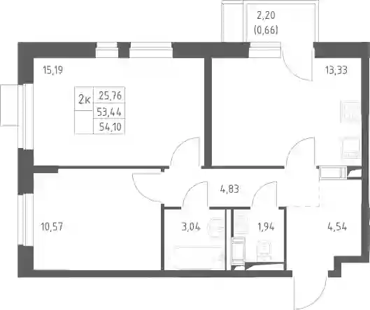 2-к.квартира, 53.44 м², 3 эт. в ЖК Пятницкие Луга Корпус 2.1