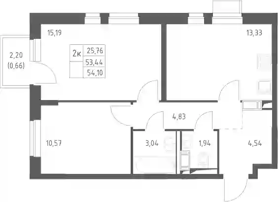 2-к.квартира, 53.44 м², 5 эт. в ЖК Пятницкие Луга Корпус 2.1