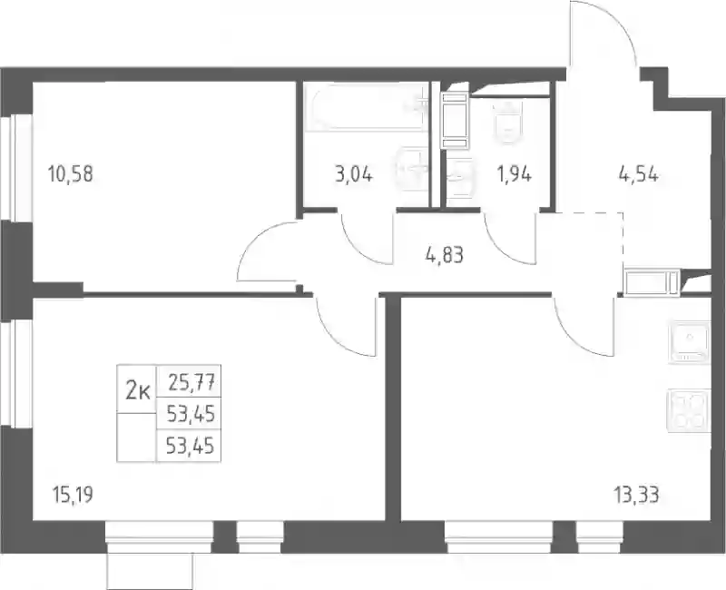 2-к.квартира, 53.45 м², 9 эт. в ЖК Пятницкие Луга Корпус 2.1
