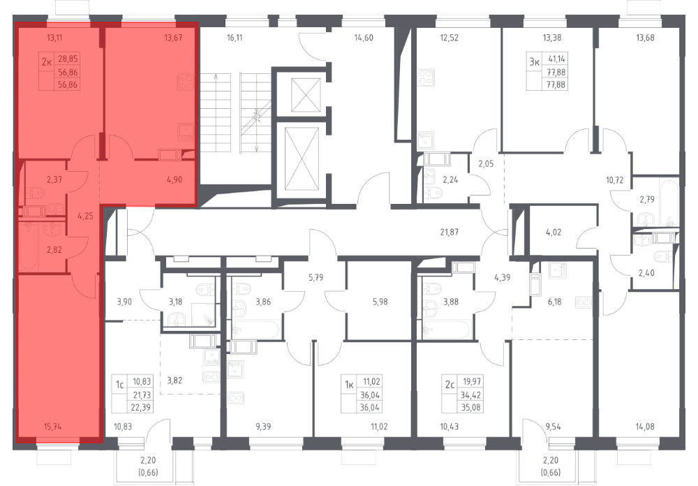 2-к.квартира, 56.86 м², 7 эт. в ЖК Пятницкие Луга Корпус 2.1