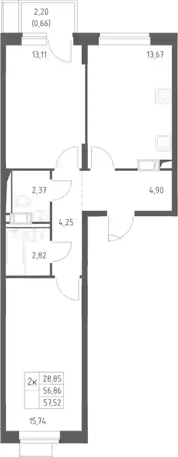 2-к.квартира, 56.86 м², 9 эт. в ЖК Пятницкие Луга Корпус 2.1