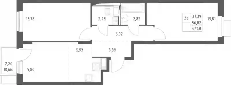 3-к.квартира, 56.82 м², 12 эт. в ЖК Пятницкие Луга Корпус 2.1