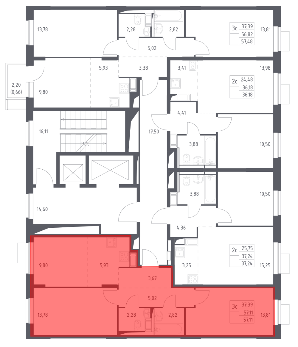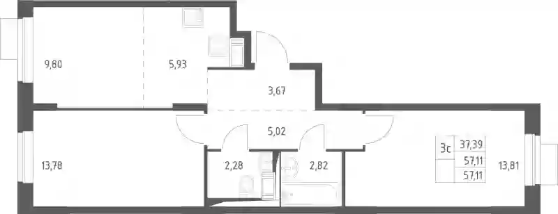 3-к.квартира, 57.11 м², 12 эт. в ЖК Пятницкие Луга Корпус 2.1