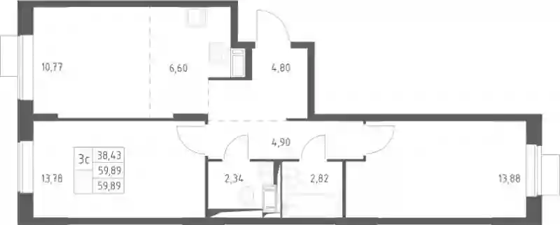 3-к.квартира, 59.89 м², 7 эт. в ЖК Пятницкие Луга Корпус 2.1