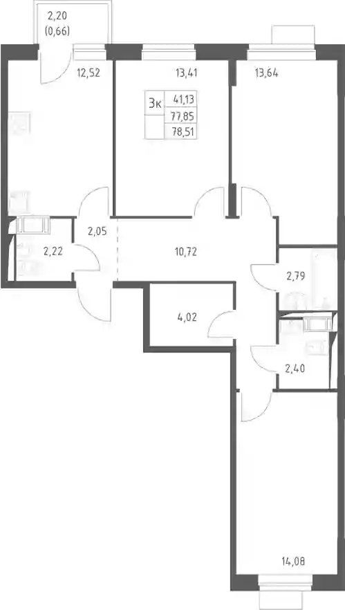 3-к.квартира, 77.85 м², 10 эт. в ЖК Пятницкие Луга Корпус 2.1