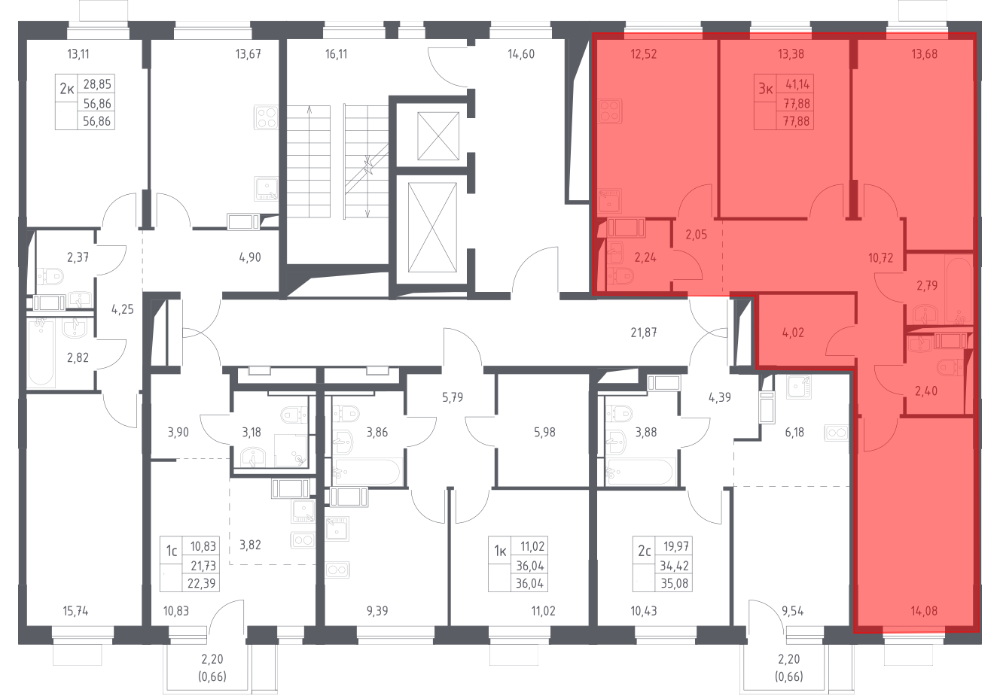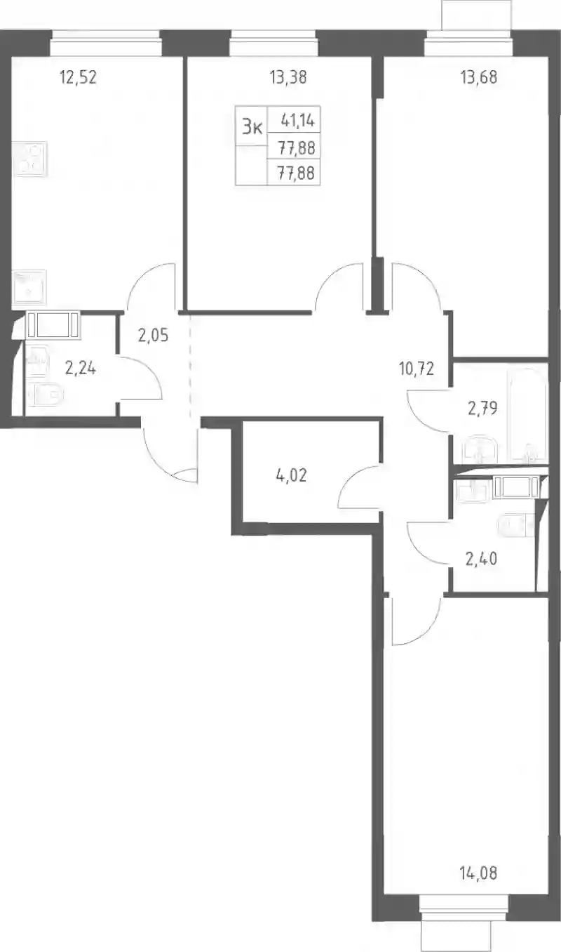 3-к.квартира, 77.88 м², 3 эт. в ЖК Пятницкие Луга Корпус 2.1