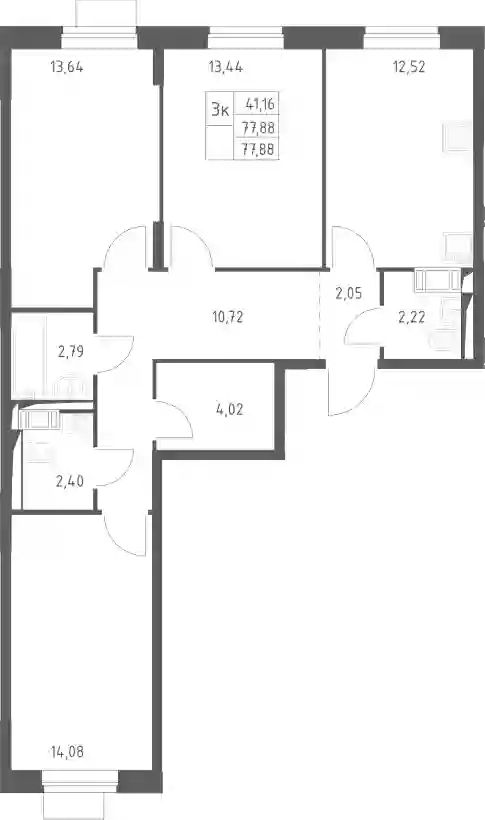 3-к.квартира, 77.88 м², 7 эт. в ЖК Пятницкие Луга Корпус 2.1