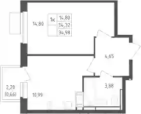 1-к.квартира, 34.32 м², 5 эт. в ЖК Пятницкие Луга Корпус 2.2