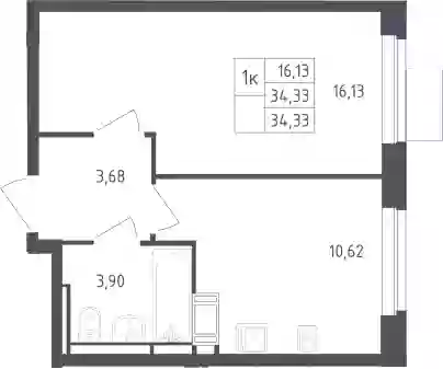1-к.квартира, 34.33 м², 12 эт. в ЖК Пятницкие Луга Корпус 2.2