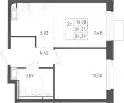 2-к.квартира, 34.34 м², 12 эт. в ЖК Пятницкие Луга Корпус 2.2
