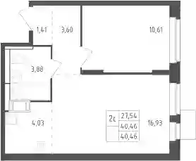 2-к.квартира, 40.46 м², 5 эт. в ЖК Пятницкие Луга Корпус 2.2