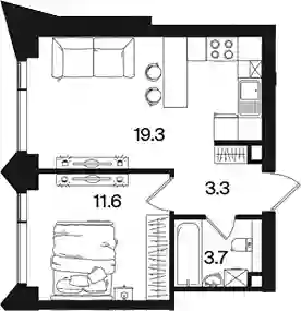 24 336 686 ₽1-к.квартира, 38.62 м², 3 эт.
