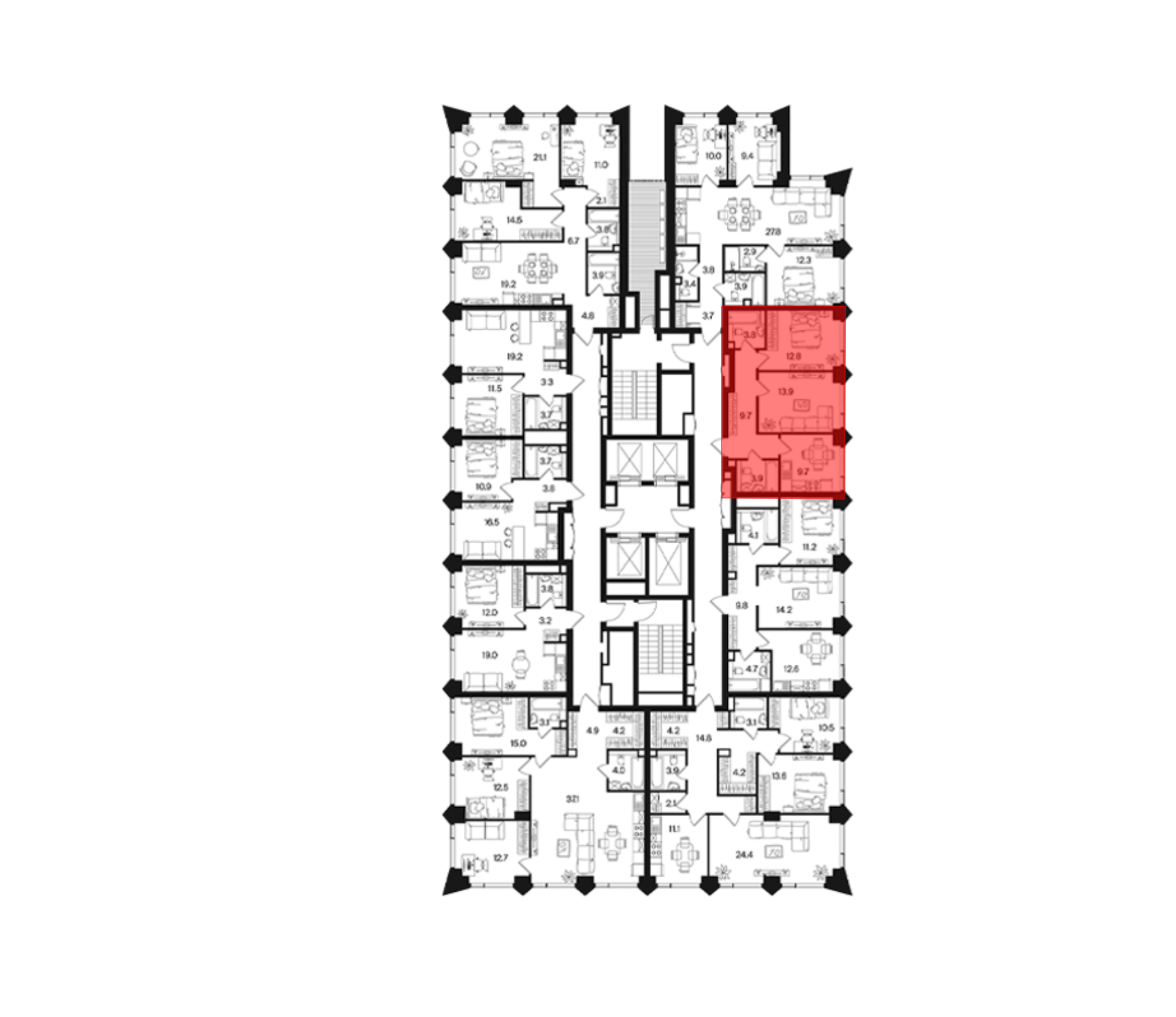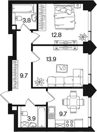 Планировки выполнены в формате «без стен», что позволяет гибко адаптировать пространство под индивидуальные потребности. В комплексе представлены квартиры от студий до 4-комнатных, а также видовые пентхаусы площадью до 141 кв. м. Из квартир с 5 этажа и выше открываются виды на парк Сокольники.