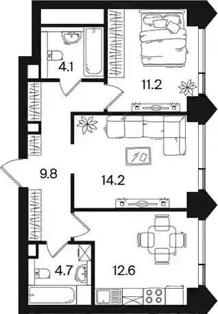 Комплекс предлагает широкий выбор уникальных вариантов жилья — от студий до эксклюзивных квартир с приватными террасами. Есть как классические, так и европлнировки с объединенной кухней-гостиной. Площадь квартир варьируется от 28,7 до 152,5 кв. метров. Часть студий имеет выход на террасу. Такие квартиры начинаются со 2 этажа. Все квартиры имеют панорамное остекление и высокие потолки от 3,3 метра. Квартиры сдаются без отделки. В проекте предусмотрена возможность объединения соседних квартир по желанию собственников.
