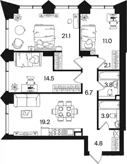 43 472 376 ₽3-к.квартира, 91.9 м², 19 эт.