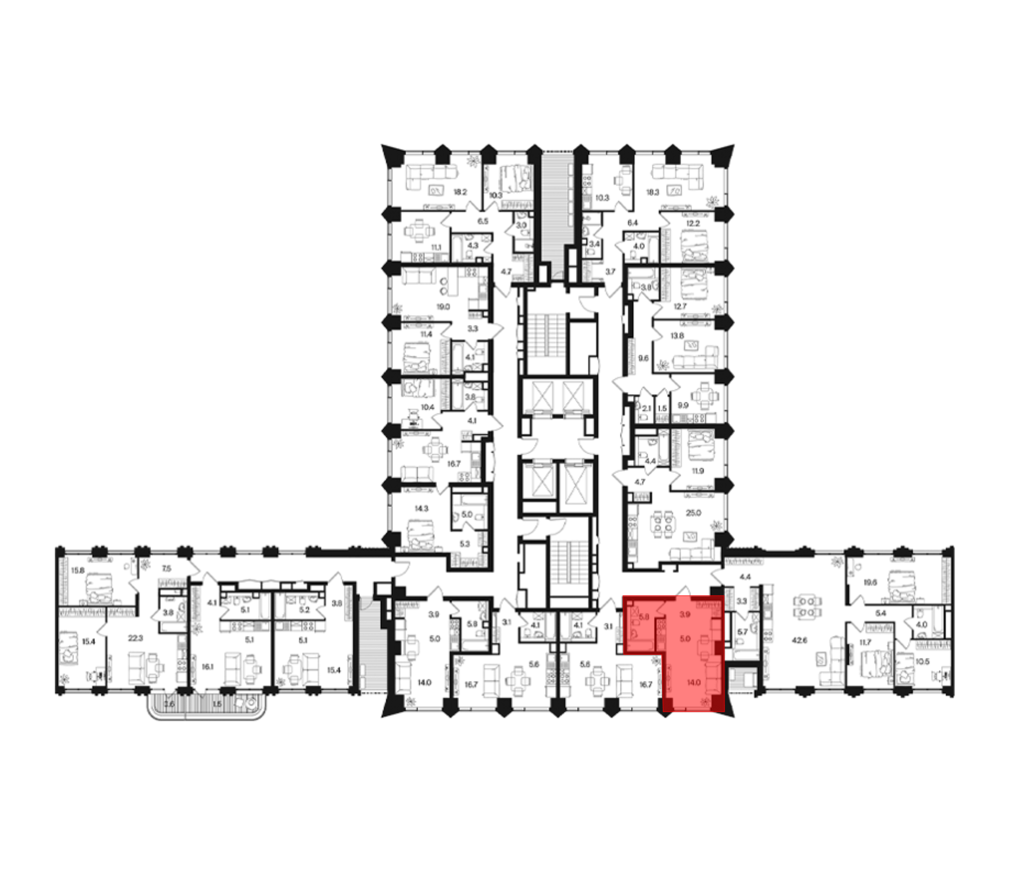 Комплекс предлагает широкий выбор уникальных вариантов жилья — от студий до эксклюзивных квартир с приватными террасами. Есть как классические, так и европлнировки с объединенной кухней-гостиной. Площадь квартир варьируется от 28,7 до 152,5 кв. метров. Часть студий имеет выход на террасу. Такие квартиры начинаются со 2 этажа. Все квартиры имеют панорамное остекление и высокие потолки от 3,3 метра. Квартиры сдаются без отделки. В проекте предусмотрена возможность объединения соседних квартир по желанию собственников.