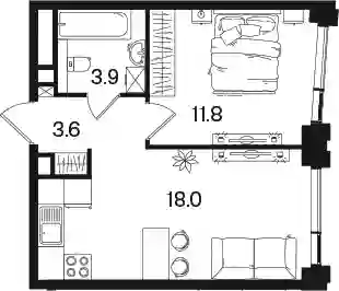 21 033 886 ₽1-к.квартира, 36.4 м², 2 эт.