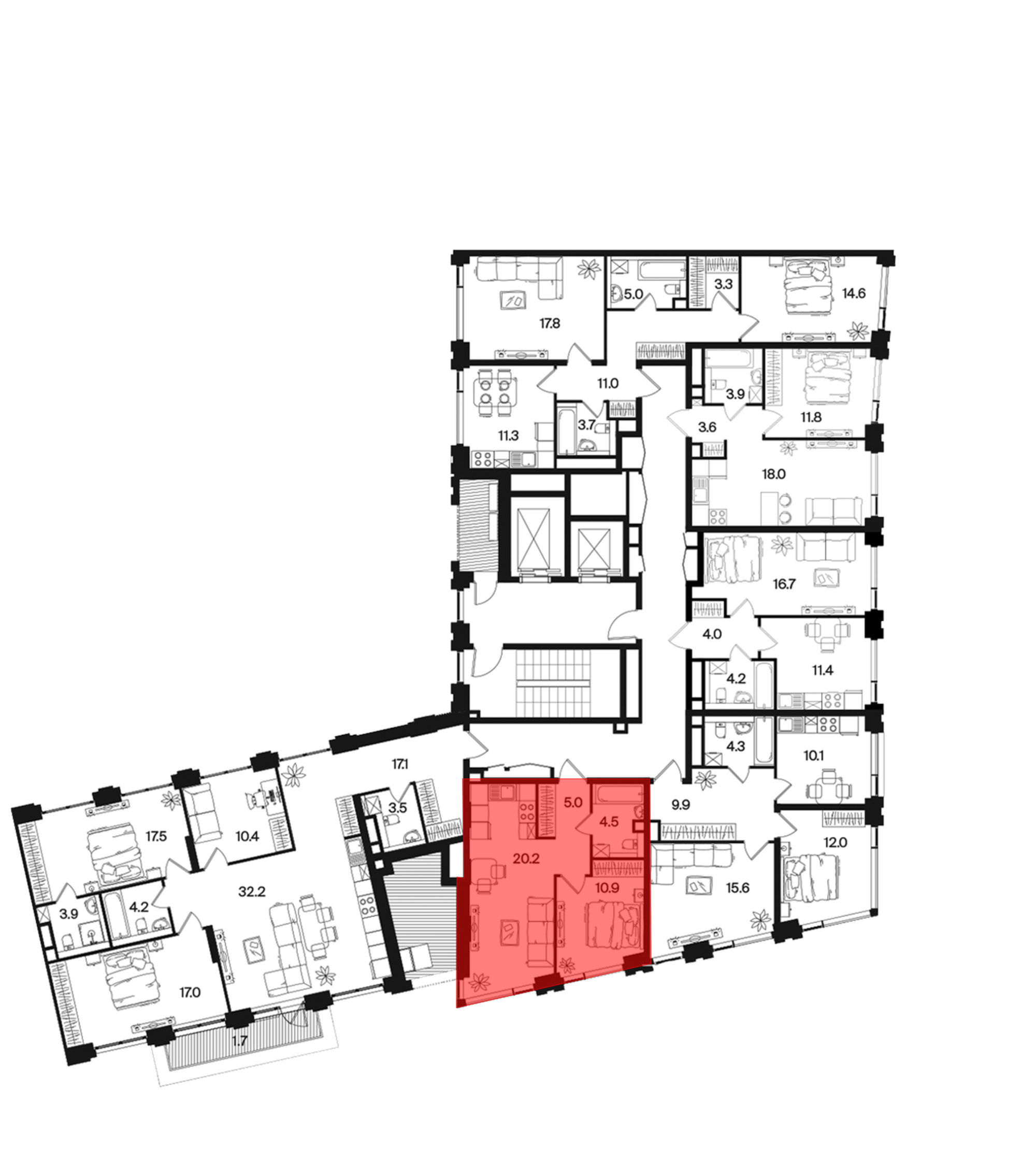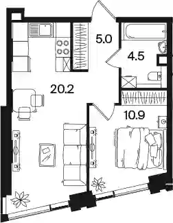 Комплекс предлагает широкий выбор уникальных вариантов жилья — от студий до эксклюзивных квартир с приватными террасами. Есть как классические, так и европлнировки с объединенной кухней-гостиной. Площадь квартир варьируется от 28,7 до 152,5 кв. метров. Часть студий имеет выход на террасу. Такие квартиры начинаются со 2 этажа. Все квартиры имеют панорамное остекление и высокие потолки от 3,3 метра. Квартиры сдаются без отделки. В проекте предусмотрена возможность объединения соседних квартир по желанию собственников.