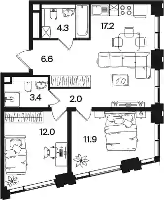 36 123 700 ₽3-к.квартира, 65.7 м², 17 эт.