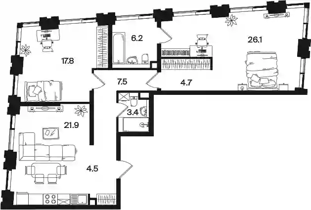 42 637 274 ₽3-к.квартира, 91.9 м², 19 эт.