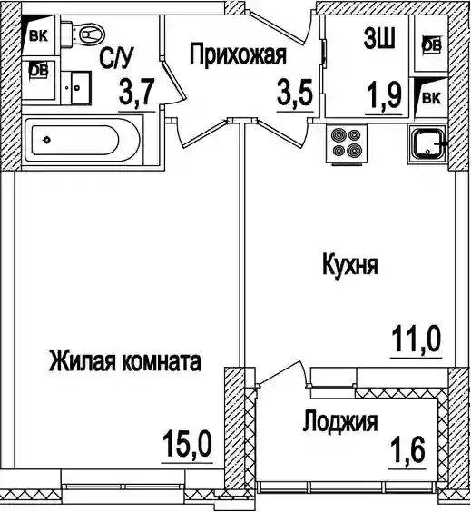 12 882 228 ₽2-к.квартира, 37.76 м², 11 эт.